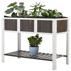 Outsunny Hochbeet Weiß, Grau 119 X 57 X 89 Cm (BxTxH) | Gewächshaus Gartenbeet Hochbeet Frühbeet