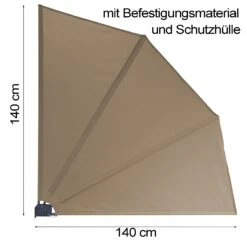 Grasekamp Balkonfächer Premium 140x140cm Taupe Mit Wandhalterung Trennwand Sichtschutz