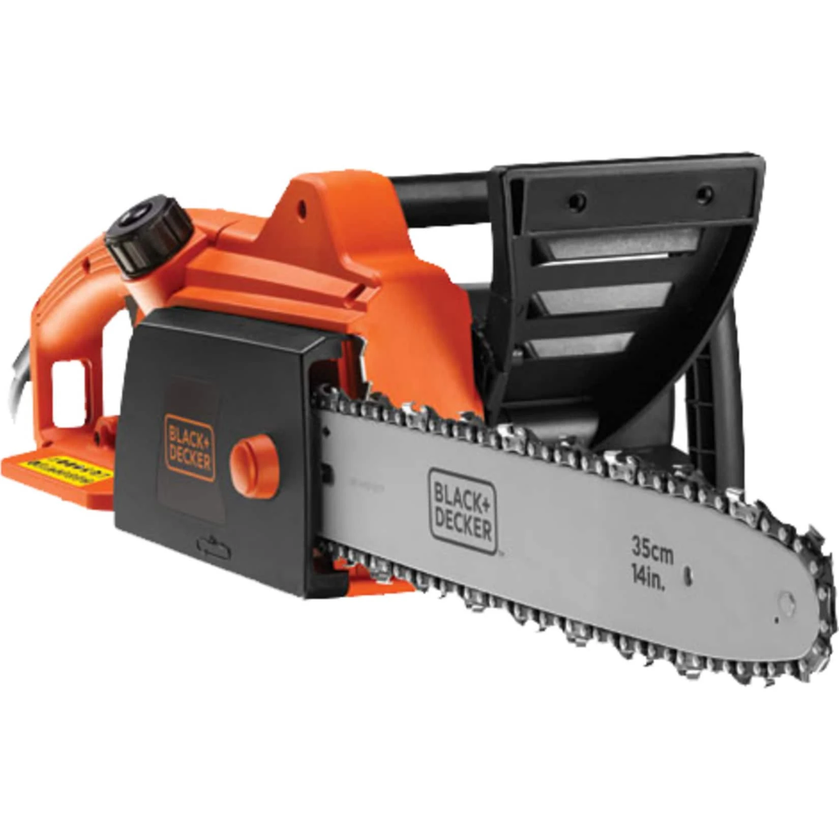 Die Black+Decker Kettensäge CS1835 eignet sich dank leistungsstarkem 1.800 Watt Motor und 12,5m/s Kettengeschwindigkeit ideal für Äste und Stämme bis zu einem Durchmesser von 35cm. Die rückschlagarme Kette ermöglicht saubere und schnelle Schnitte in feuchtem und trockenem Holz. Das Anti-Vibrationssystem sorgt dabei für noch größeren Bedienkomfort, und die Stahl-Anschlagkrallen erhöhen die Stabilität für sicheres Arbeiten. Durch das automatische Kettenschmierungssystem wird stets eine kontinuierliche Ölversorgung der Kette gewährleistet. Sollte die Kette zurückschlagen, sorgt die Kettenbremse für eine automatische augenblickliche Unterbrechung der Stromversorgung (