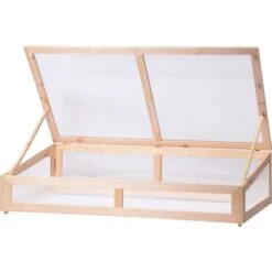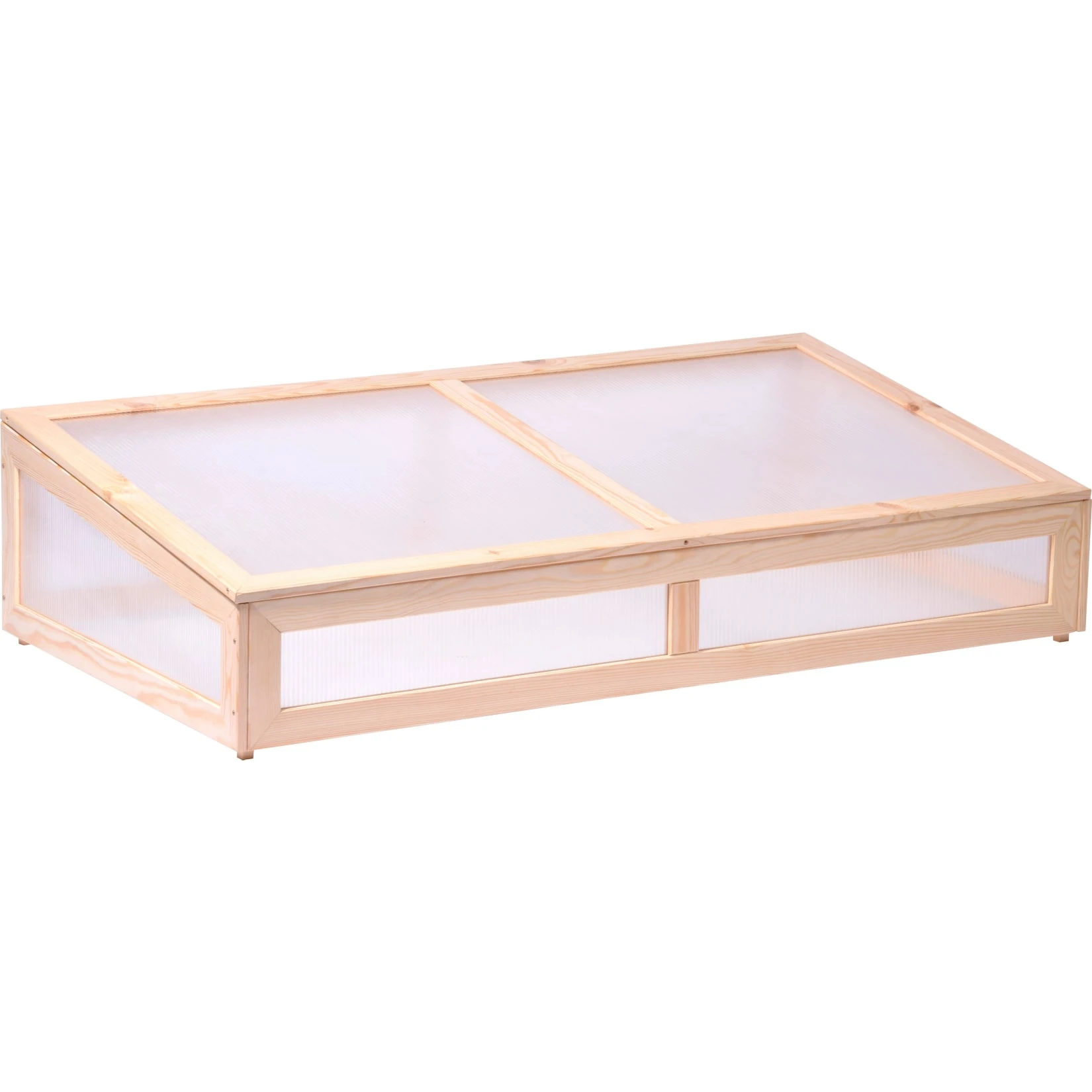 Mit diesem großen Frühbeetaufsatz verlängern Sie die Wachstumsperiode Ihrer Pflanzen um mehrere Wochen. Es besteht aus einem robusten Kiefernholzrahmen mit doppelwandigen, transparenten Polycarbonatwänden. So sind die Jungpflanzen zuverlässig vor Wind und Wetter geschützt und bekommen genug Sonnenlicht, um zu wachsen. Der arretierbare Deckel ermöglicht eine komfortable Bearbeitung der Anbaufläche. Sie können den Aufsatz sowohl auf ein entsprechend großes Hochbeet montieren, oder ihn direkt auf dem Boden platzieren. So erhalten Sie ohne Aufwand ein großes Anzuchtbeet für viele Pflanzen. Das verwendete Kiefernholz stammt aus nachhaltiger und umweltfreundlicher europäischer Forstwirtschaft. Das Frühbeet hat Außenmaße von ca. 128 x 67 cm, dabei ist es vorne ca. 22 cm hoch und hinten ca. 31,5 cm.