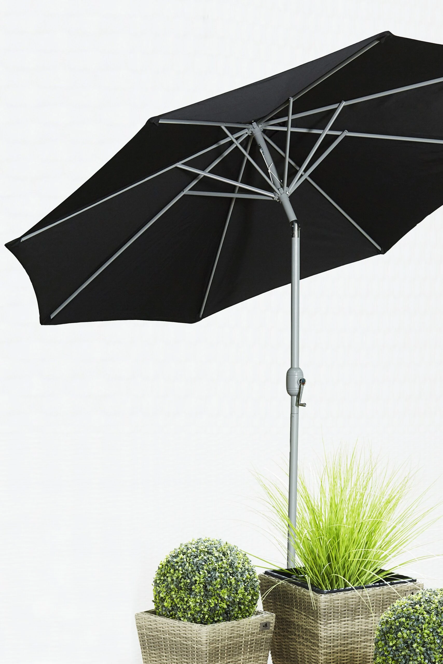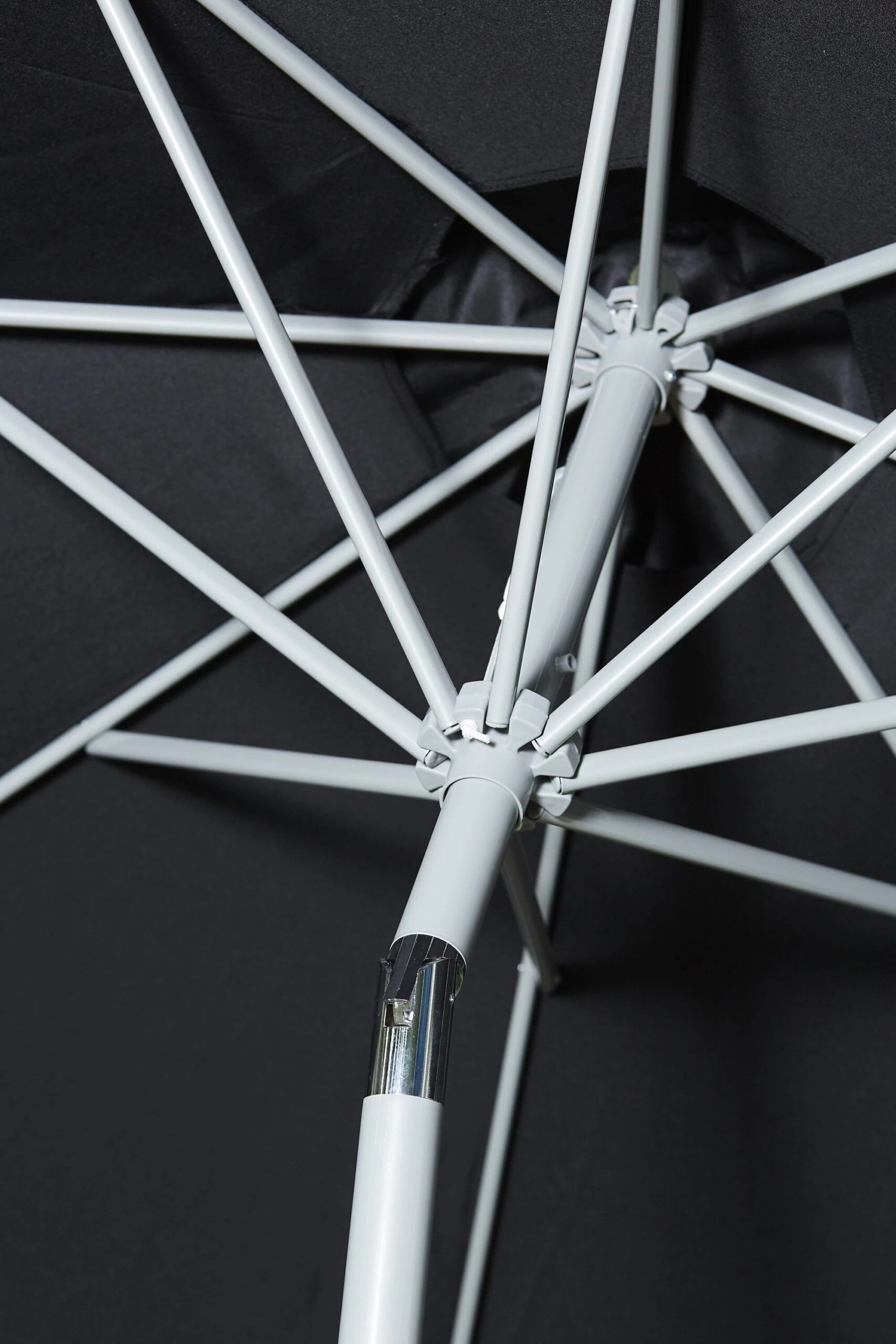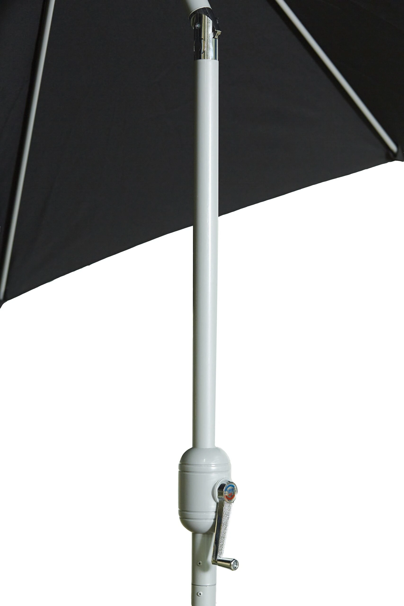Der Gartenfreude Sonnenschirm ist mit einem wetterbeständigen Aluminiumschaft gefertigt. Der Durchmesser vom stabilen Schaft beträgt 38 mm. Der Schirm ist mit einer leichtgängigen Kurbel ausgestattet, durch diese die Schirme sich leicht öffnen und schließen lassen. Durch das vorhandene Knickgelenk lässt sich der Schirm neigen. Die Anzahl der Streben beträgt 8, diese bestehen aus stabilem, pulverbeschichteten Stahl. Die Textilbespannung besitzt eine Windöffnung und ist aus 100% Polyester mit ca. 180g/m² gefertigt. Der Stoff ist wasserabweisend und bietet einen UV-Schutz von 50+. Der Schirmbezug ist tauschbar und das Schirmdach kann geneigt werden. Die Gesamthöhe beträgt 245 cm.