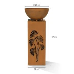 MaĂe: Gesamthöhe ca. 59 cm, SĂ€ule ca. 18 x 18 cm, Pflanzschale ca. Ă 25 cm