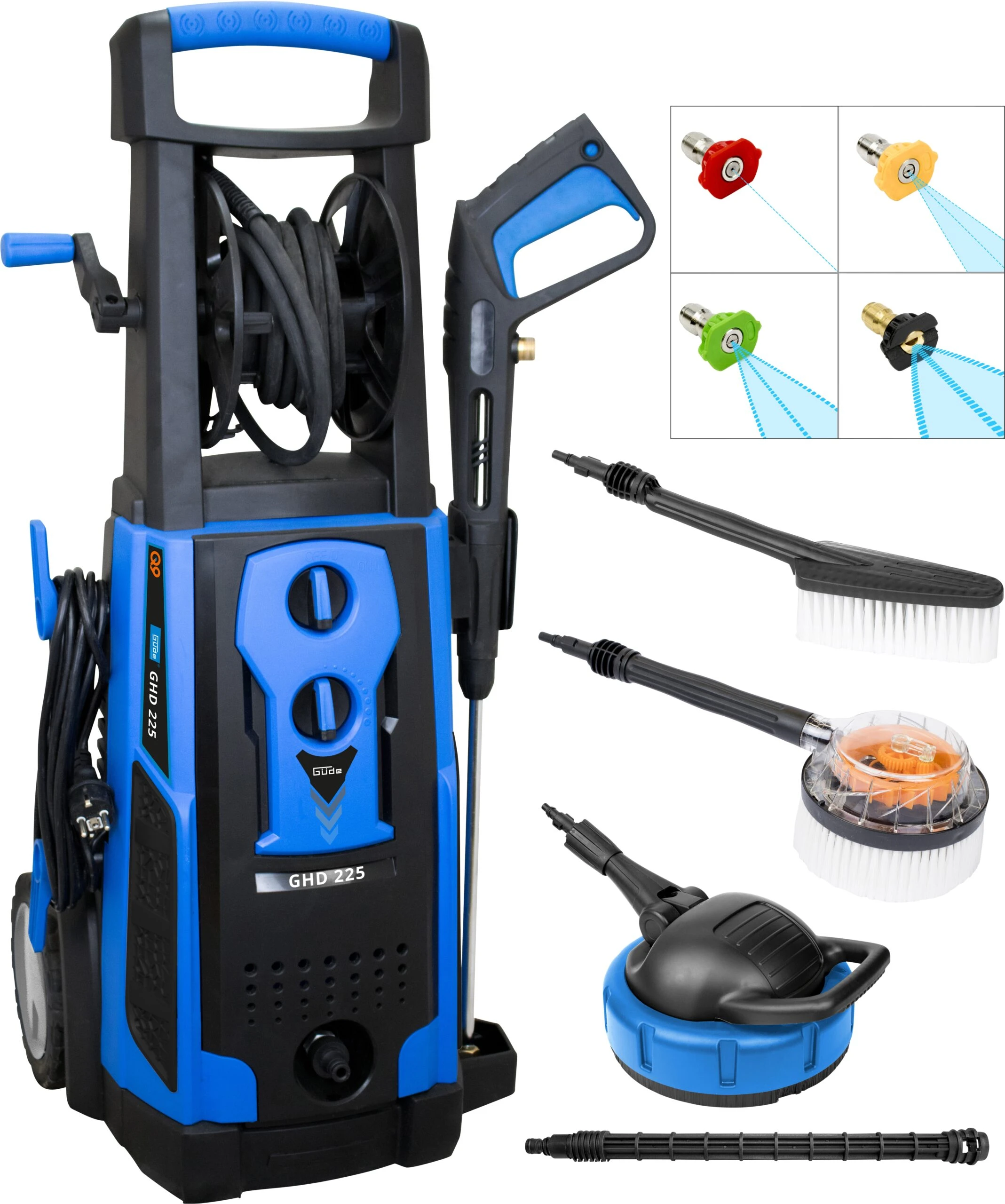 Schlauchtrommel, HD-Pistole mit 4 Düsen (0° / 15° / 25°