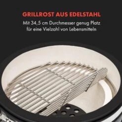 - Grillrost aus Edelstahl: mit 34,5 cm Durchmesser genug Platz für eine Vielzahl von Lebensmitteln