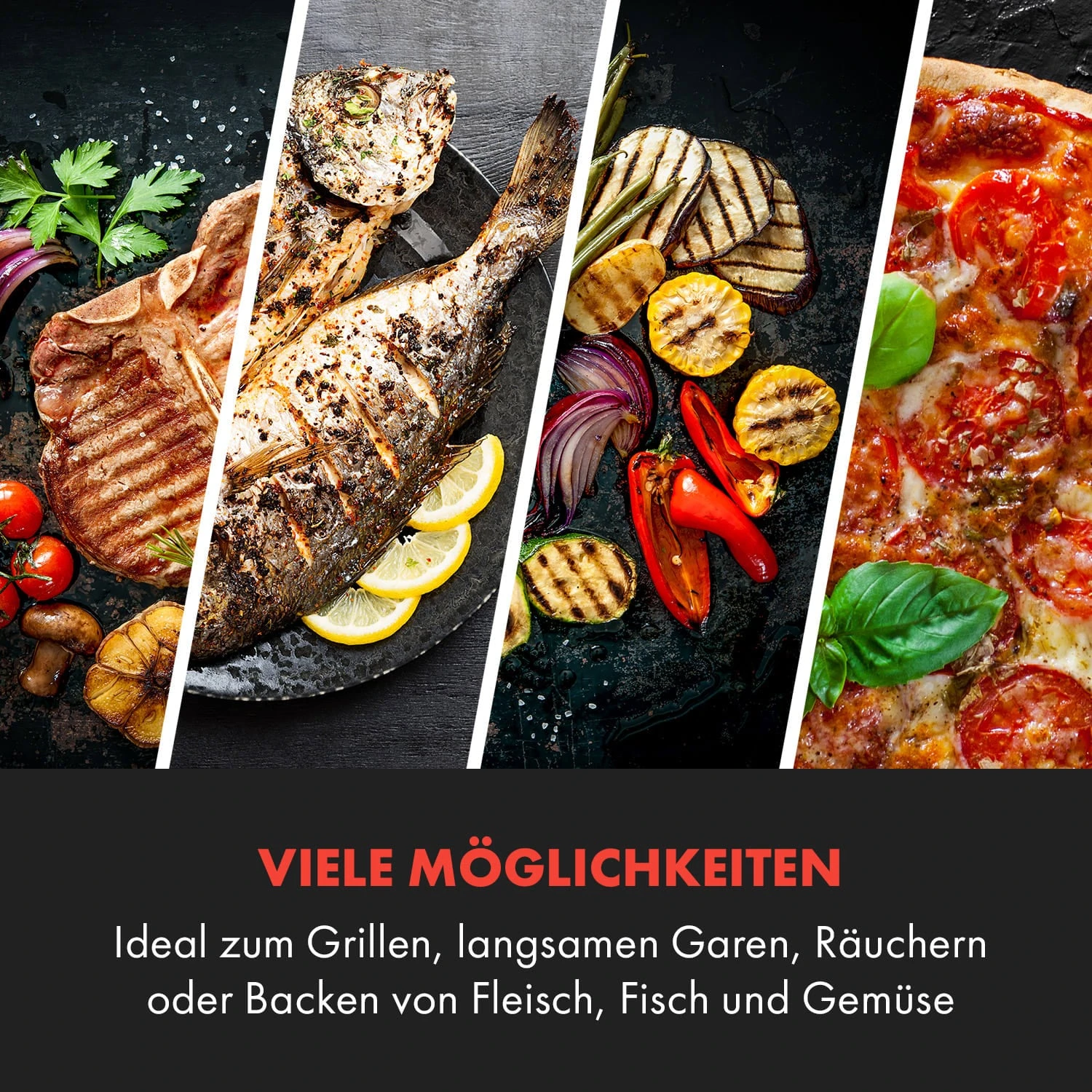 - Viele Möglichkeiten: ideal zum Grillen, langsamen Garen, Räuchern oder Backen von Fleisch, Fisch und Gemüse