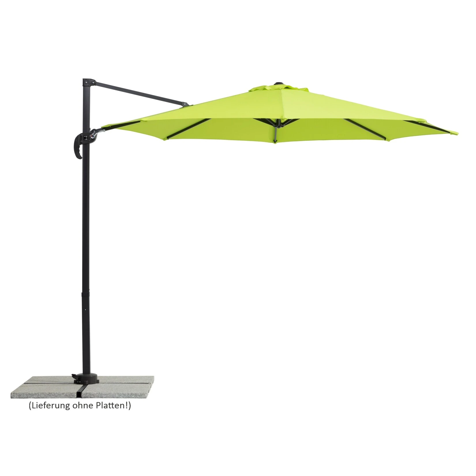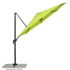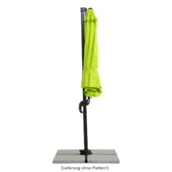 Im Lieferumfang enthalten ist ein Plattenständer für 4 Wegeplatten in der Größe 50 x 50 x 5 cm (Platten nicht enthalten), welcher dem Schirm einen sehr stabilen Halt gibt.