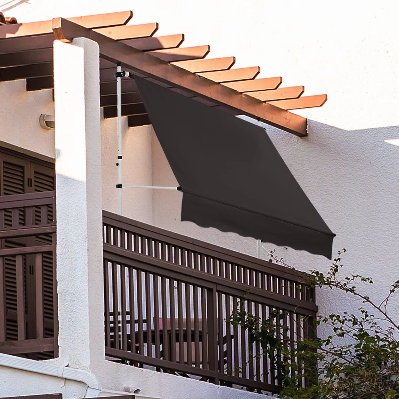 Diese hochwertige Klemmmarkise erspart Ihnen das Bohren: Sie befestigen diese Markise mithilfe von zwei flexiblen Teleskopstangen zwischen dem Boden und einem Vorsprung. Als Fixpunkte kommen oben zum Beispiel Vordächer, ein überstehendes Dach oder ein darüber liegender Balkon infrage.