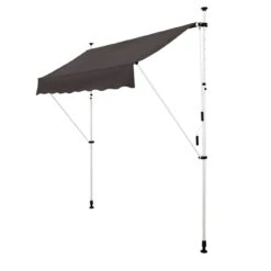 Im Vergleich mit fest installierten Markisen sichern Sie sich mit diesem Modell mehrere Vorteile. Sie bringen diese Markise im Handumdrehen an. Der wesentliche Schritt besteht darin, die beiden Teleskopstangen zwischen Boden und oberen Befestigungspunkten anzubringen. Die Länge der Teleskopstangen passen Sie mit minimalem Aufwand an. Nach dem Lockern der Schrauben sind sie problemlos aus- und einziehbar. Anschließend stellen Sie den Neigungswinkel ein, indem Sie die beiden Ausfallarme entsprechend verlängern oder verkürzen. Diese einfache Montage und Bedienung sind nennenswerte Pluspunkte. Sie entgehen unnötiger Arbeit, zudem beschädigen Sie Ihr Gebäude nicht. Darüber hinaus setzen Sie diese Klemmmarkise vielseitig ein. So können Sie diese im Campingurlaub für Ihr Wohnmobil nutzen, nach der Heimkehr wieder als Terrassen- oder Balkonmarkise.