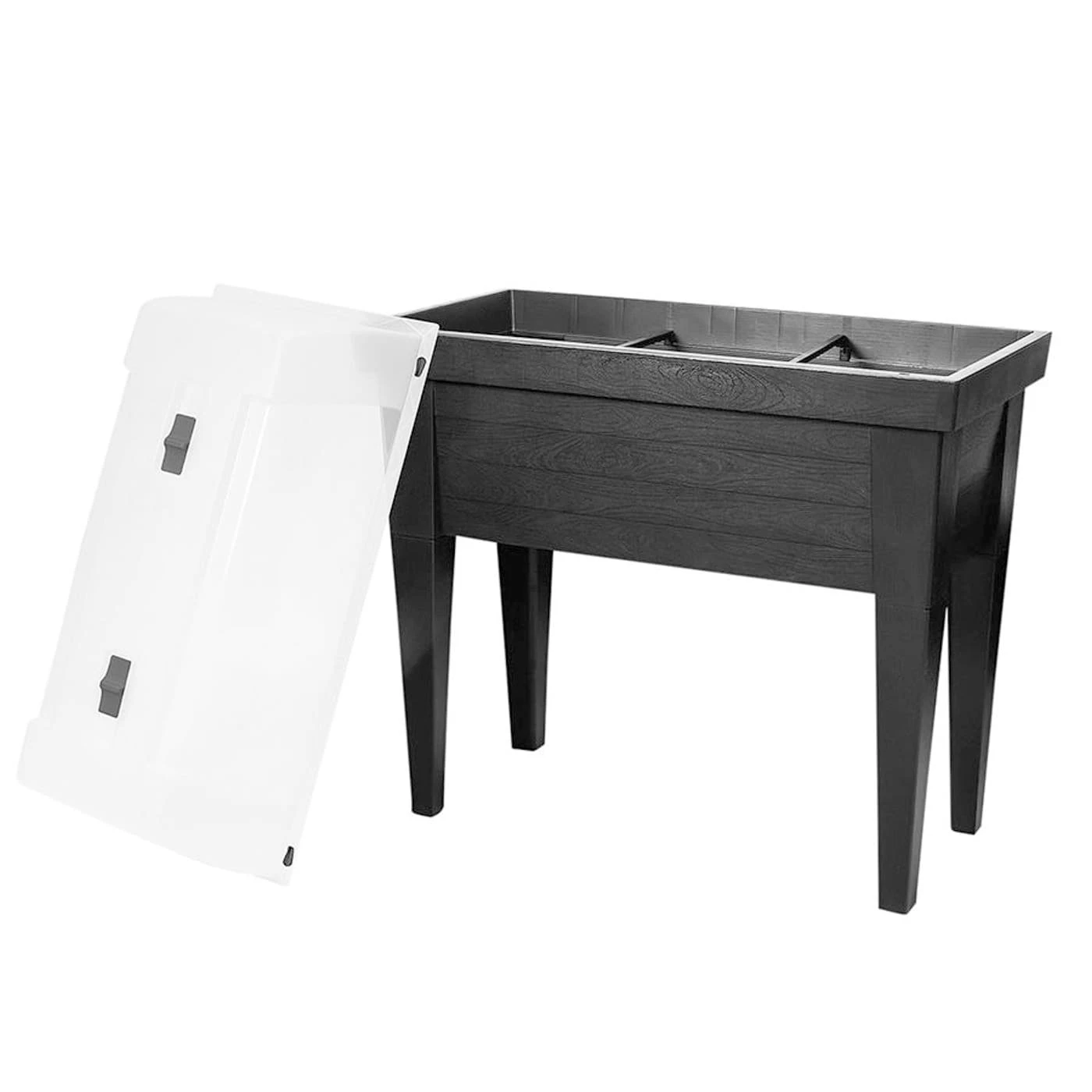 - durch abnehmbare Beine als Hochbeet oder Pflanzkasten verwendbar
