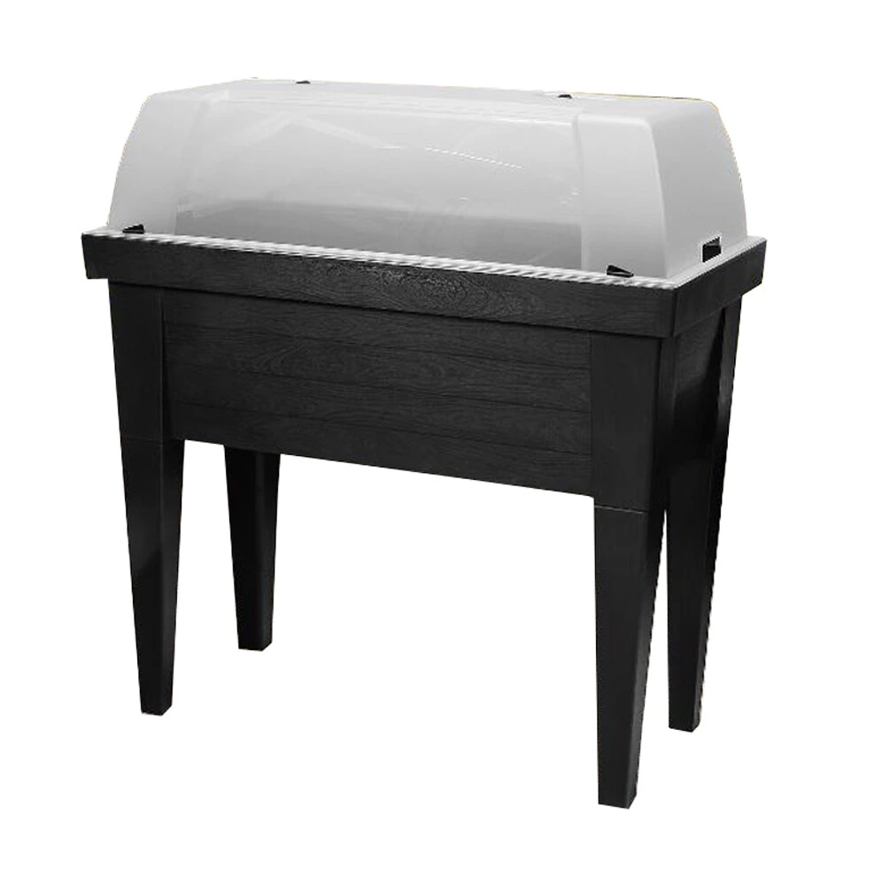 Multifunktionales, modernes und extra großes Hochbeet aus Kunststoff mit abnehmbarem halbtransparentem Deckel für den Balkon oder die Terrasse. Es kann sowohl als praktisches Hochbeet als auch, ohne Beine, als größerer Pflanzkasten genutzt werden. Perfekt geeignet zur Ansaat von Blumen, Grünpflanzen und zum Anlegen eines heimischen Kräutergartens.